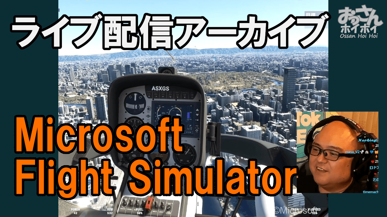 途中、セスナでの着陸訓練では誘導を無視した強引なアプローチでリスナーをハラハラさせる場面があった。「ボーイング747の着陸は無理だ!やっぱりおっさんにはセスナかヘリがちょうどいい。」[01:24:00] これは本音で、機体が大きくなるほど操作が繊細になるので、今の自分の技術ではセスナかヘリが限界だと分かってきた。